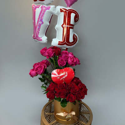 Price: $380.00 Red Box with Red Flowers – Elegant Valentine's Day Gift & Decoration Product Tags: Next-day Delivery